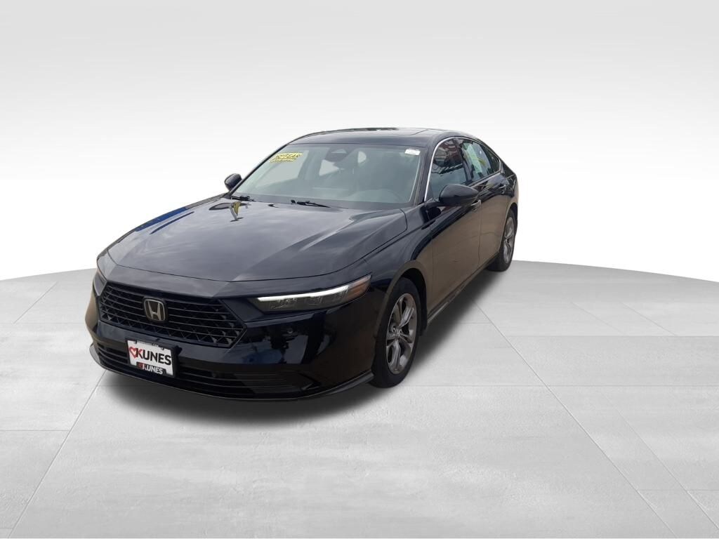 CARFAX One-Owner. Clean CARFAX. Black 2023 Honda Accord Hybrid EX-L w/o BSI FWD eCVT 2.0L 16V DOHC 2.0L 16V DOHC, 4-Wheel Disc Brakes, ABS brakes, Alloy wheels, Apple CarPlay/Android Auto, Automatic temperature control, Electronic Stability Control, Exterior Parking Camera Rear, Heated Front Bucket Seats, Lane departure: Lane Keeping Assist System (LKAS) active, Leather-Trimmed Seat Trim, Memory seat, Power moonroof, Power passenger seat, Remote keyless entry, Steering wheel mounted audio controls, Traction control. 51/44 City/Highway MPG Odometer is 41051 miles below market average!